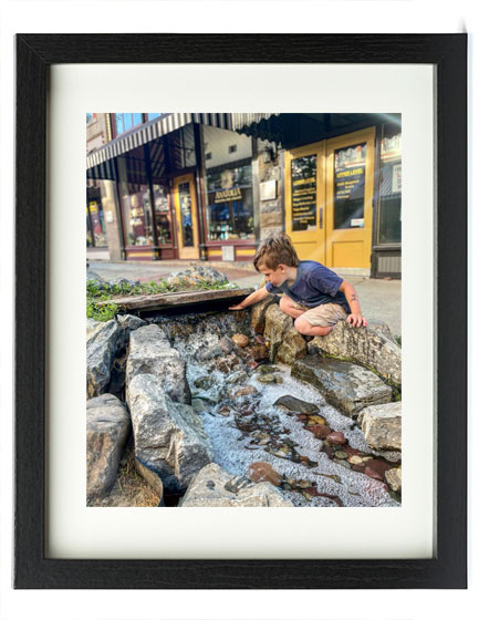 Caption: One of my favorite things about my community is Saturday afternoons on the Walking Mall in Downtown Helena. Here is a photo of my little brother checking out the little stream that runs through the Walking Mall in what is called Last Chance Gulch. This is where gold was discovered and mined over a century ago. We usually get to go to the Parrot Confectionary or Big Dipper Ice Cream for a treat, too!